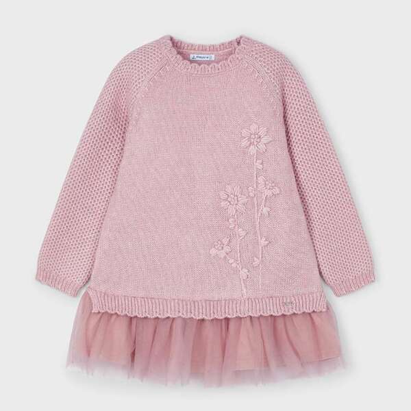 MAYORAL Pletené tylové šaty ružové Girl combined knit tulle dress rosa 4918 | Welcomebaby.sk