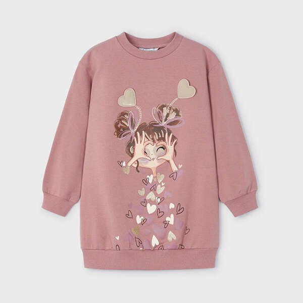 MAYORAL Dievčenské teplákové šaty s potlačou ružové Girl Jumper Dress rose 4933 | Welcomebaby.sk