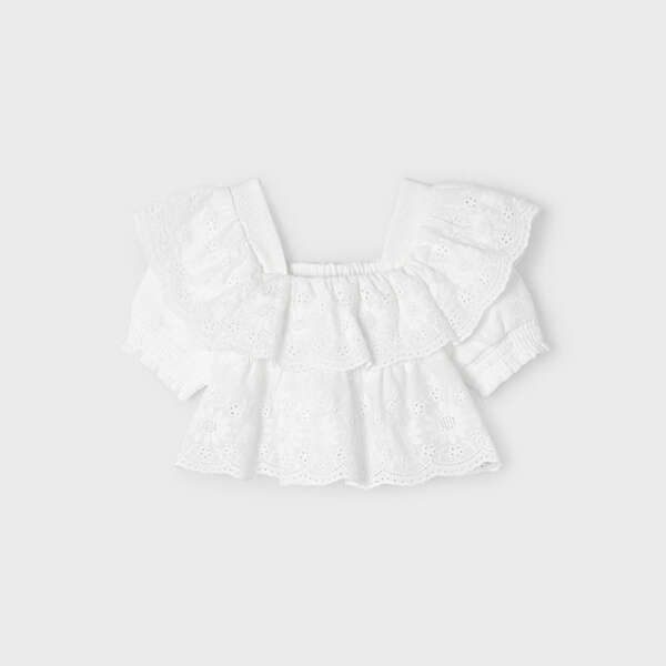 MAYORAL Vyšívaná blúzka s volánmi biela Girl Embroidered Ruffle Blouse white 3178 | Welcomebaby.sk