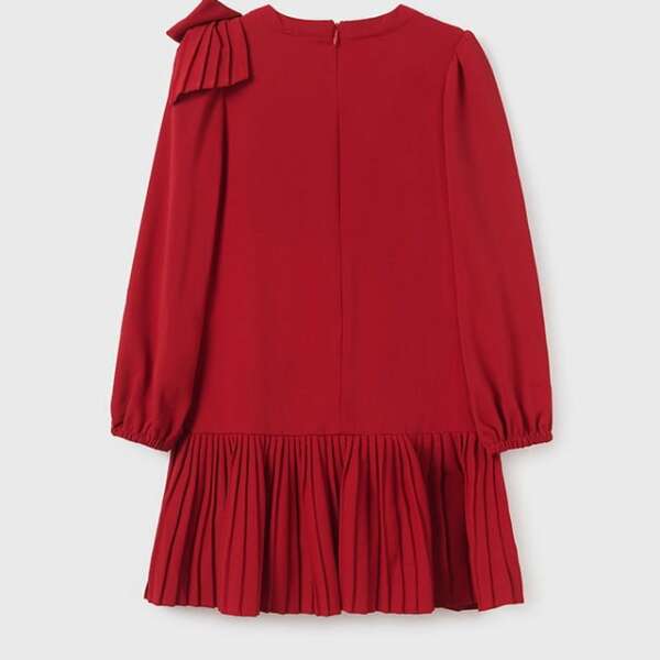 MAYORAL Dievčenské šaty s dlhým rukávom červené Girl crepe bow dress 7954 | Welcomebaby.sk