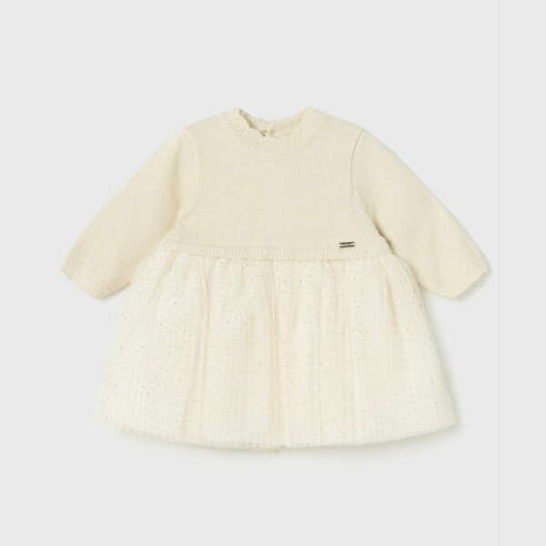 MAYORAL Dievčenské elegantné šaty béžové Pleated knit tulle dress for baby champagne 2858 | Welcomebaby.sk