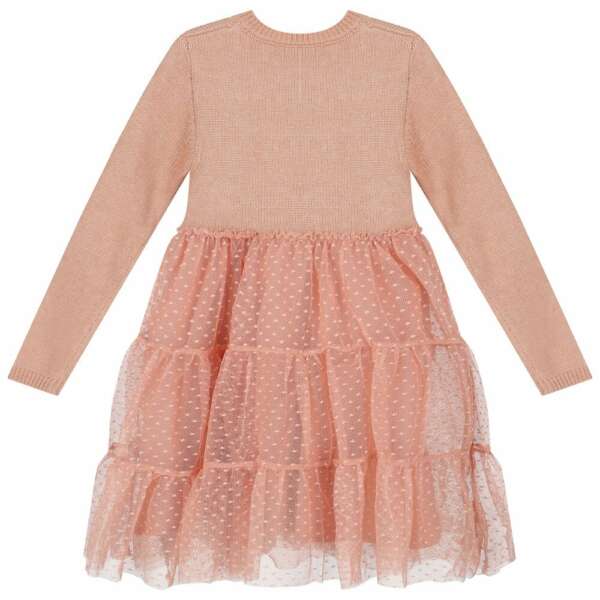MAYORAL Tylové šaty s pleteným vrchom ružové Girl combined tricot and tulle dress nude 4912