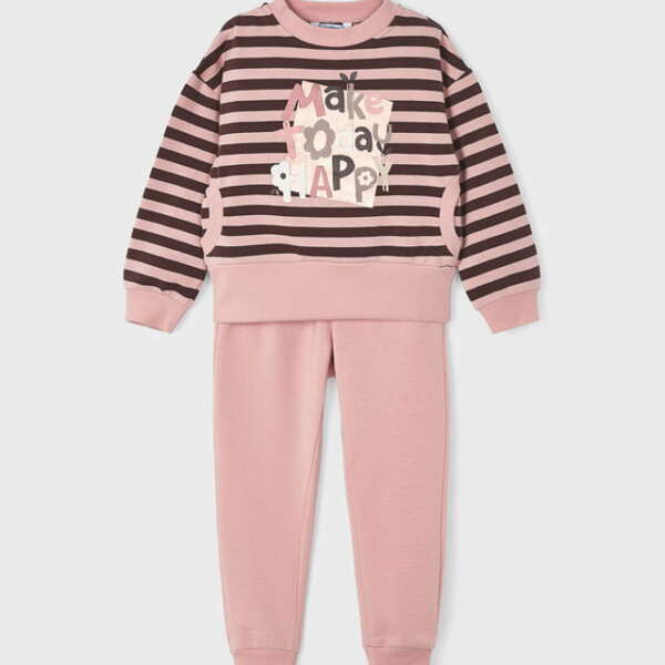 MAYORAL Dievčenské ružové tepláky s pruhovanou mikinou Girl 2 piece tracksuit 4862
