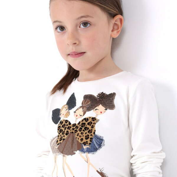 MAYORAL Dievčenské tričko s dlhým rukávom s potlačou biele Long sleeve tshirt white 4005 | Welcomebaby.sk