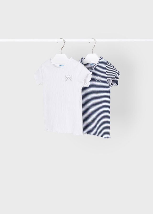 2pack dievčenských tričiek biele a pruhované modré Mayoral