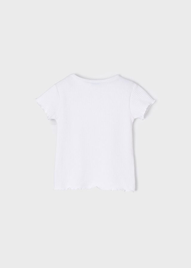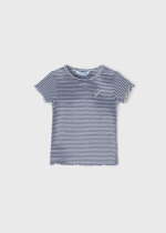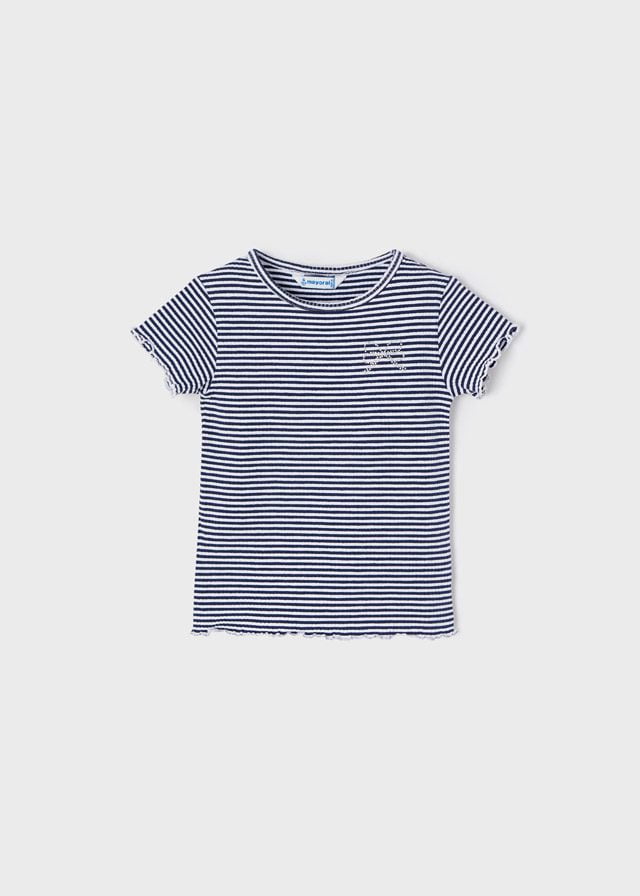 Rebrované dievčenské tričká s krátkym rukávom vo farbe pruhované modré a biele. Vyrobené z bavlny. Tričká sú Ecofriends.