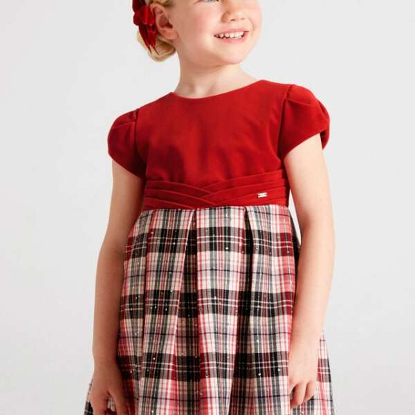 Dievčenská červená zamatová zapletaná čelenka s kvetmi.