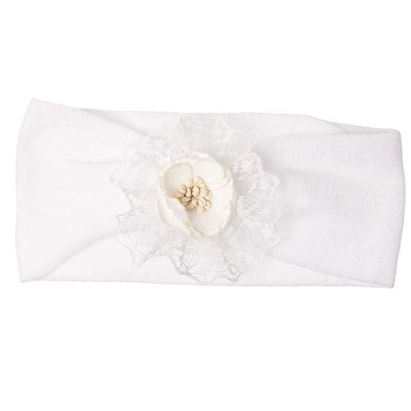 Baby čelenka široká s kvetom a výšivkou Siena biela
