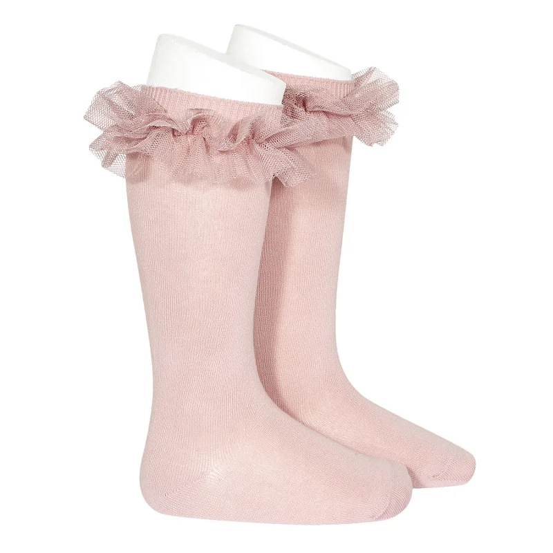 Bavlnené podkolienky so sieťovanými volánikmi Cóndor pale pink
