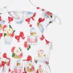 Zloženie: 100% bavlna. Šaty s potlačou mašličiek a parfému. Vzadu prekrížené. Neviditeľné zapínanie na boku. Ľahko sa udržiavajú.