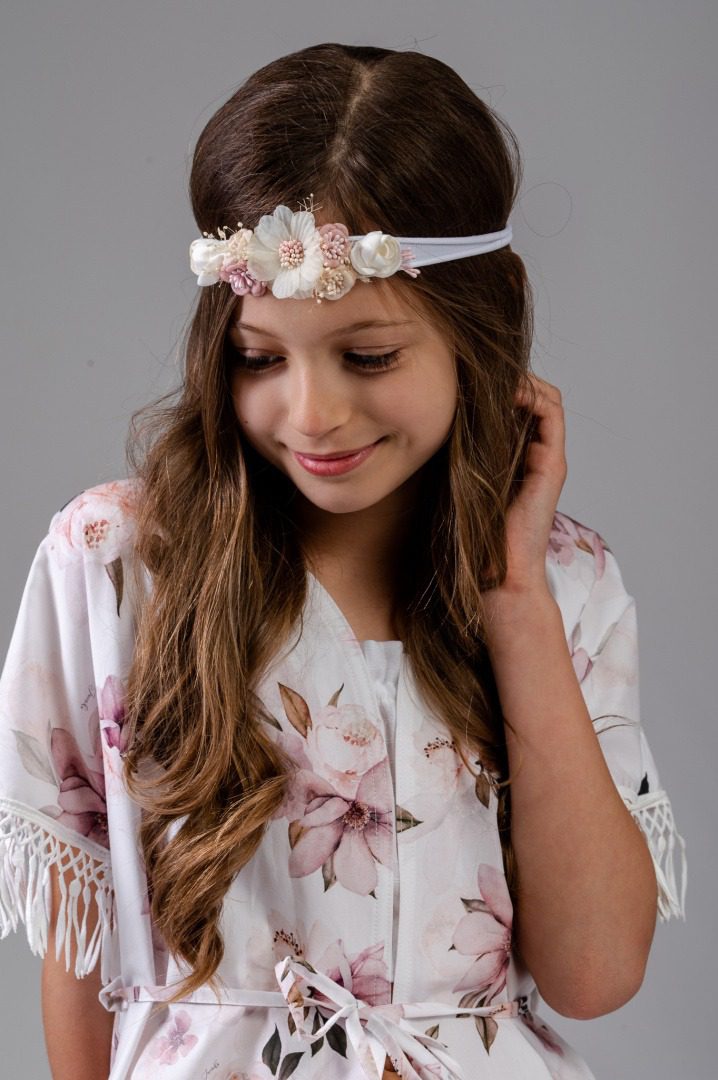 Biela čelenka s kvetmi. Čelenka  je veľkosť one size.