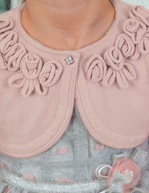 Moje dieťa ma stále napodobňuje a chce vyzerať rovnako ako ja. Dievčenské kašmírové bolerko využijete v chladnejších dňoch k šatám i k sukni. Bolerko s dlhým rukávom má pri krku krásnu aplikáciu v tvare kvetov. Staroružová farba a môžete skombinovať s akoukoľvek farbou. Bolerká skladom v čiernej, zlatej a ružovej farbe.