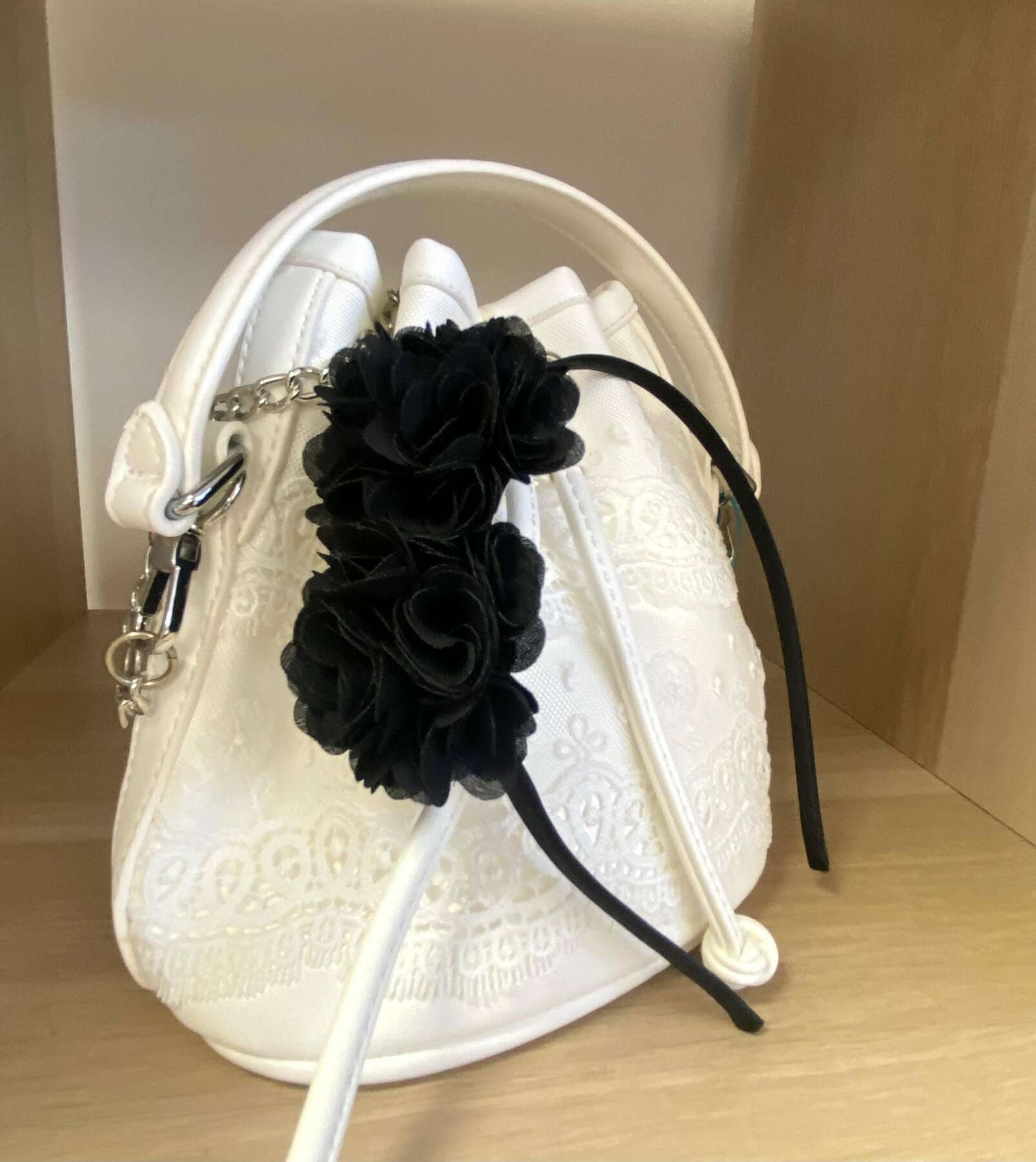 Čierna sviatočná čelenka s kvetmi. Kvety sú bombuľkového tvaru a sú vedľa seba. Štýlová čelenka vhodná na oslavy, ale aj na bežné nosenie.
