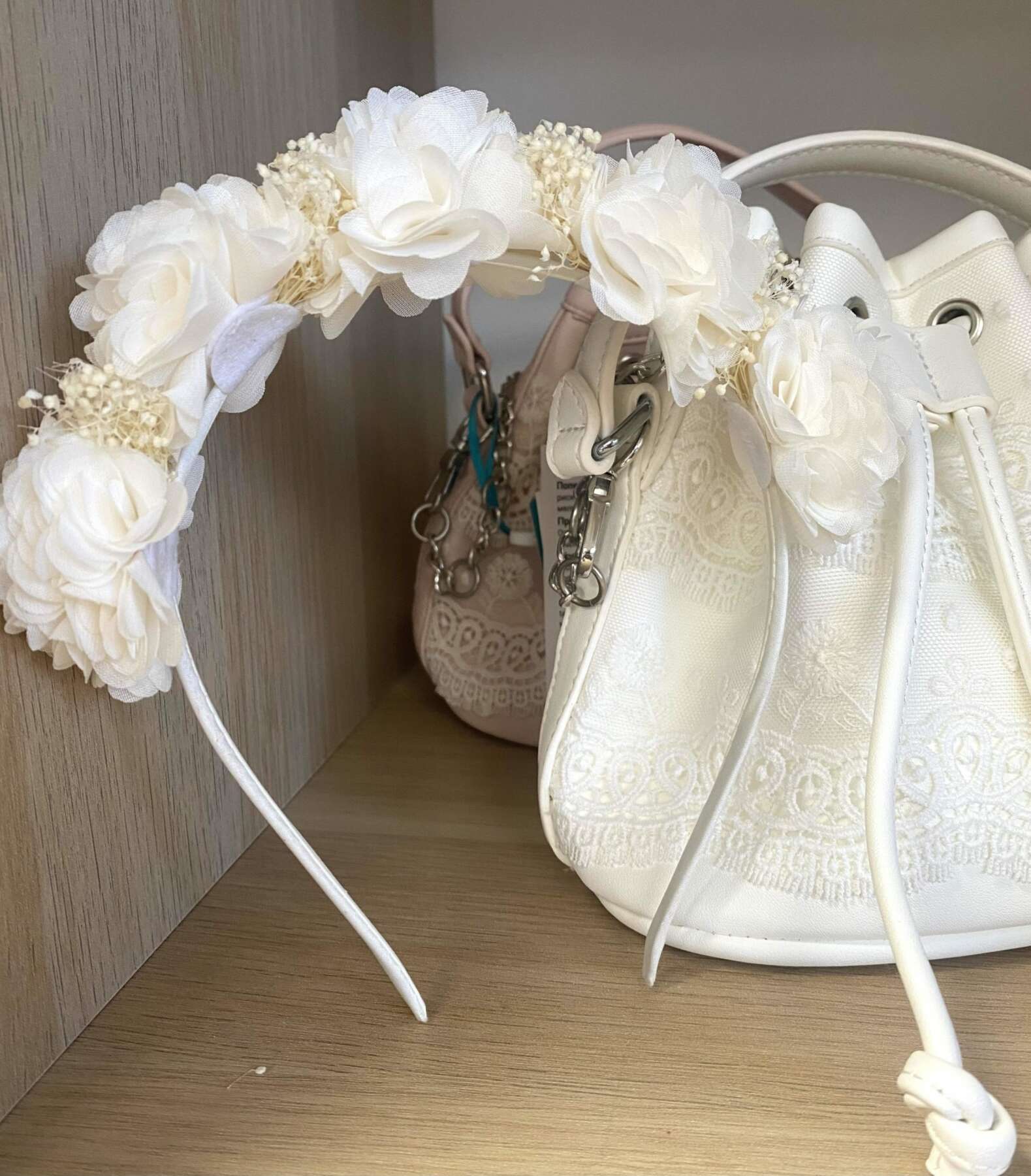 Čelenka s kvetmi a gypsomilkou Siena krémová
