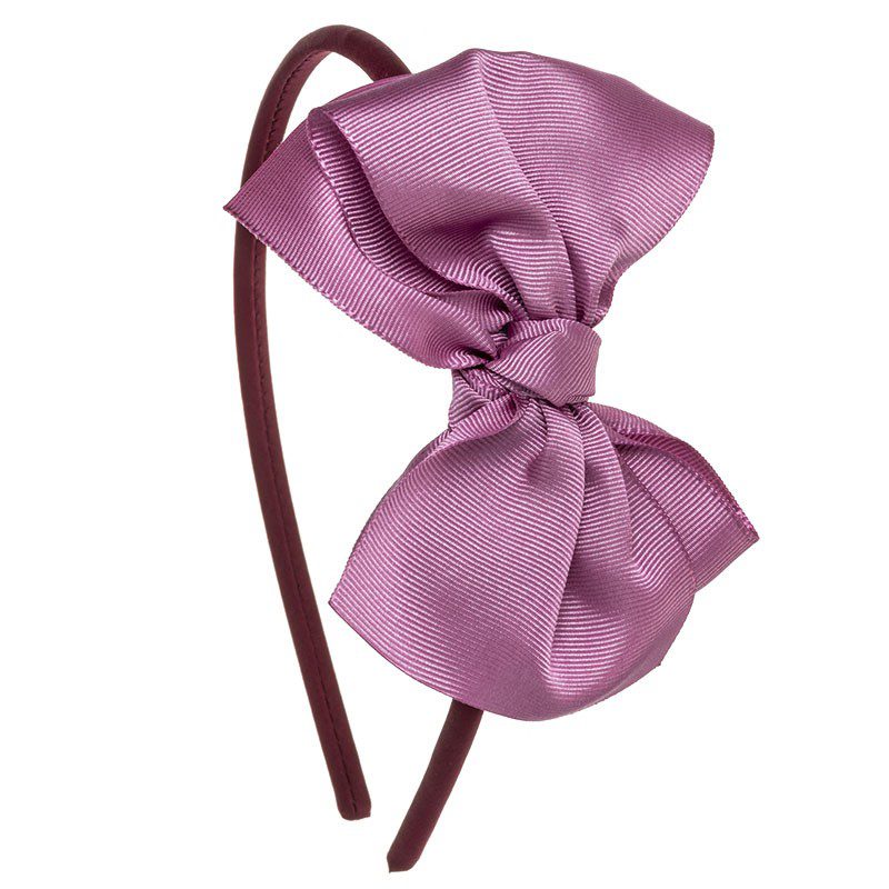 Krásna pevná fialovoružová čelenka s veľkou lesklou mašľou Siena. Štýlová čelenka na bežné nosenie, ale aj pre spoločenské príležitosti.