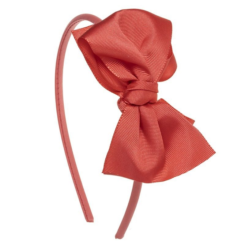 Čelenka s veľkou lesklou mašľou Siena korálová