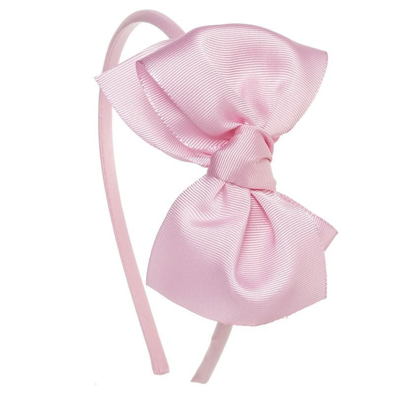 Čelenka s veľkou lesklou mašľou Siena light pink baby ružová