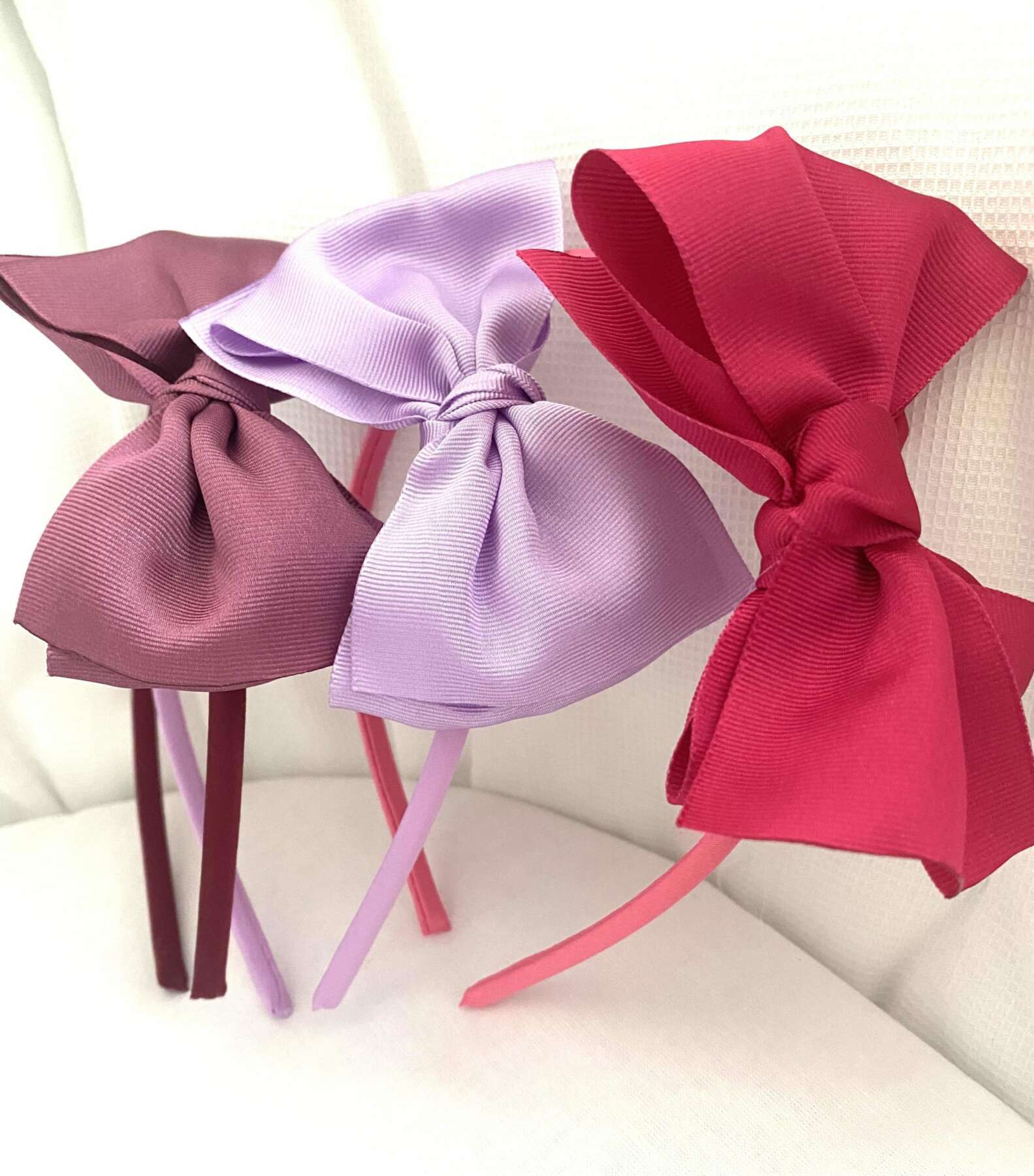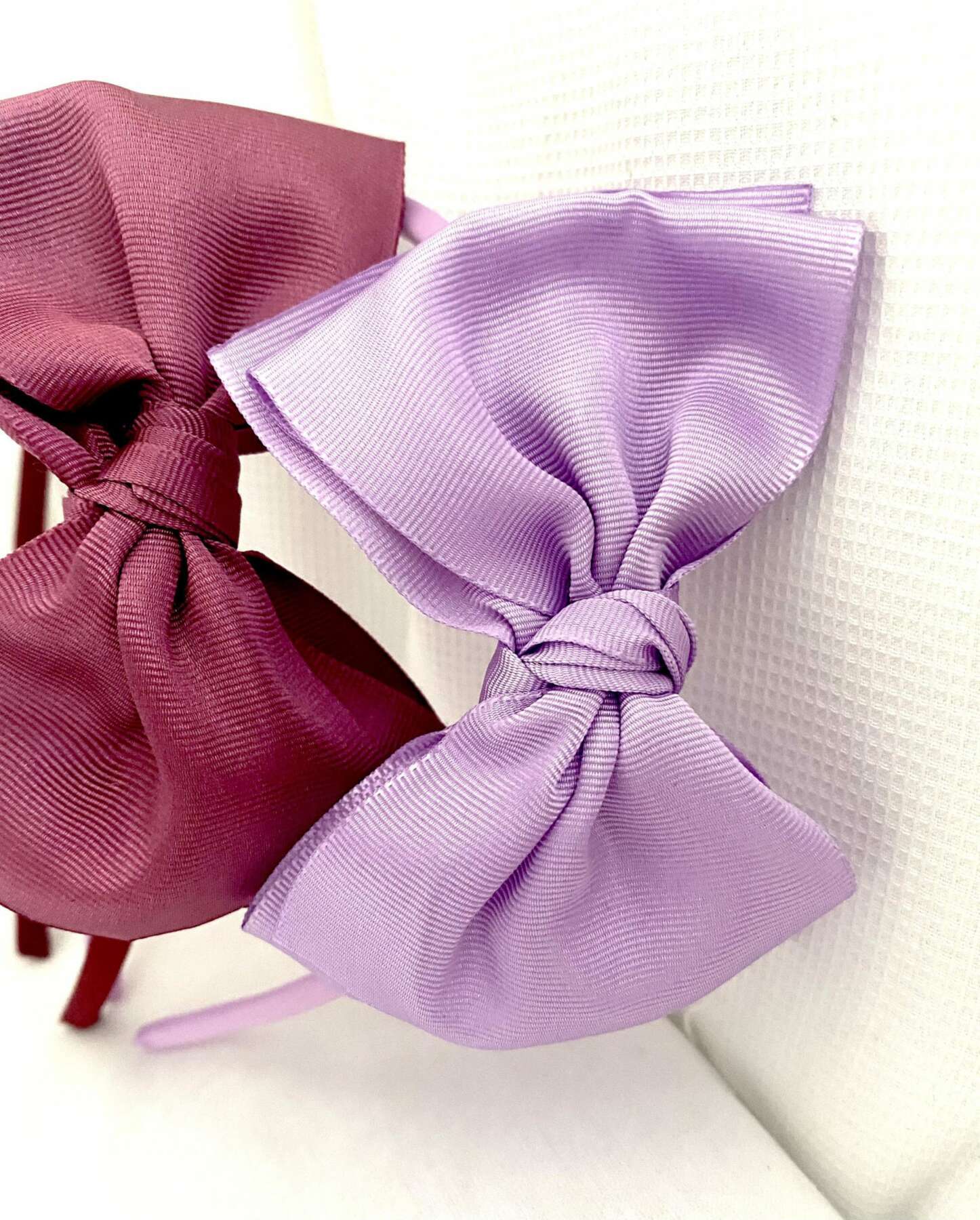 Soft headband with bright big hair bow Siena light purple handmade in Spain.