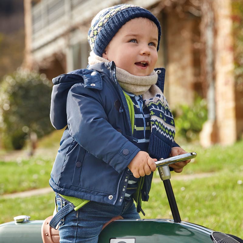 Chlapčenská bunda s kapucňou a veľkými gombíkmi Mayoral