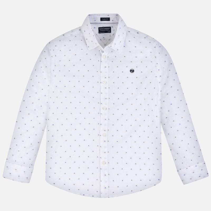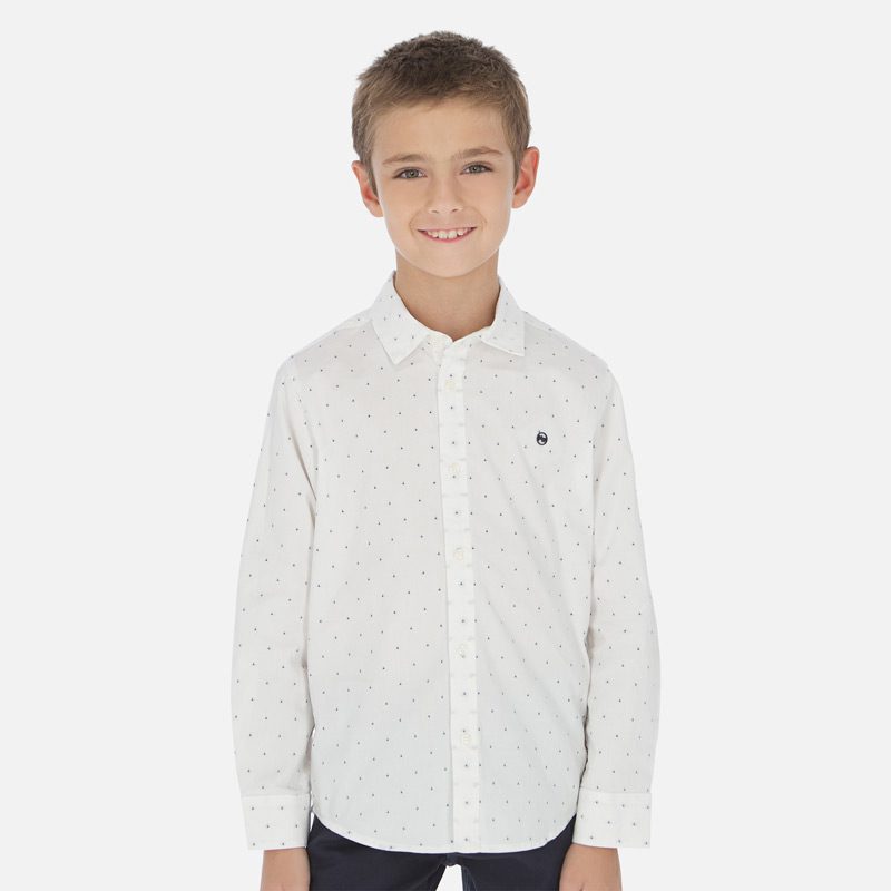 Chlapčenská košeľa s dlhým rukávom a jemnými bodkami Mayoral biela