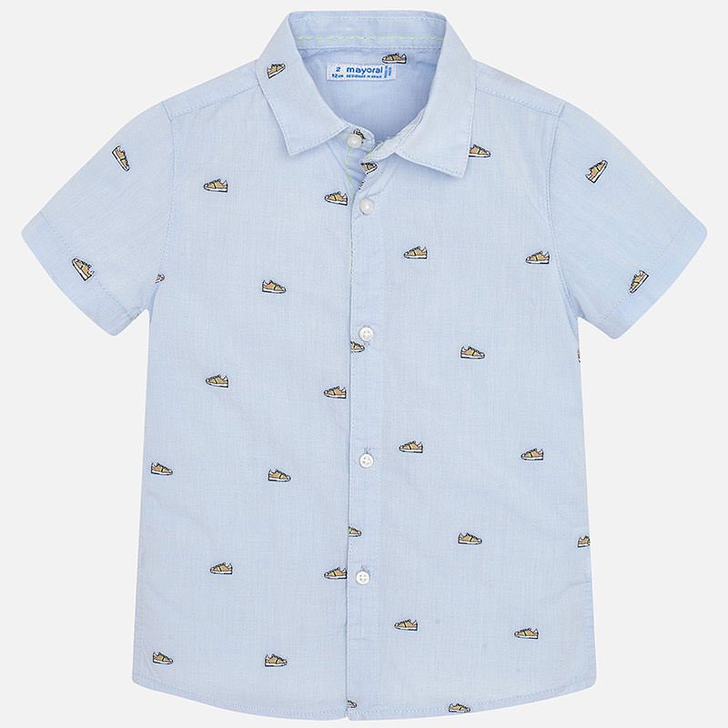 Chlapčenská košeľa s krátkym rukávom a potlačou tenisiek Mayoral svetlomodrá