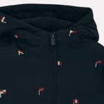 Prechodná zateplená bunda pre chlapca. S potlačou vlajky. Bunda má dve bočné vrecká a na rukávoch patenty. Táto bunda pre chlapca je vhodná na chladnejšie dni, na jar, jeseň a teplejšiu zimu.