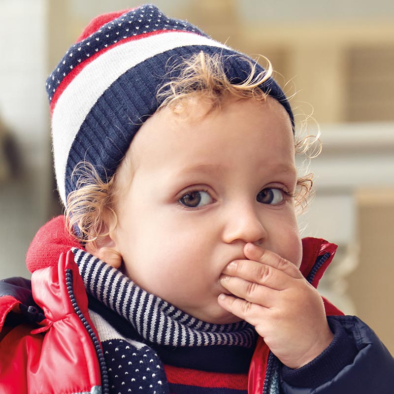 Chlapčenská pruhovaná čiapka a šál Mayoral červenomodrá