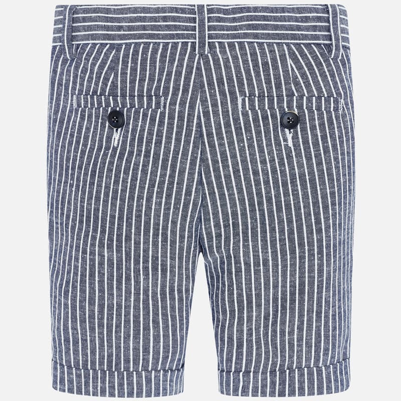 Bermuda shorts for boy. Faux flies. Elasticated waistband with button fastening. Fresh and contemporary fabric with linen. Side pockets. Item belonging to our more elegant and exclusive collection used to dress the little ones on special occasions.