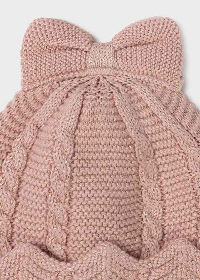 Čiapkový set s mašľou vo farbe make up v peknom balení. Materiál: 47% bavlna, 45% modal, 5% polyester, 3% metalic fiber. Vyrobený z pružných materiálov pre pohodlné nosenie.