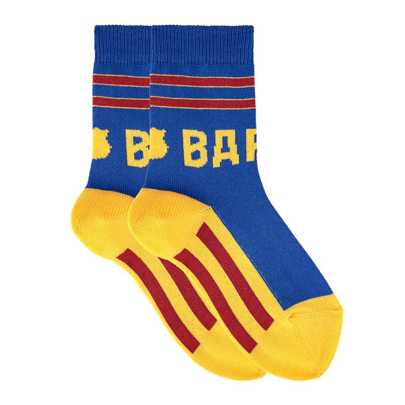 Detské FC Barcelona ponožky modrožltej farby. Obľúbené ponožky pre futbalistov. Barcelona ponožky pre najmenších fanúšikov, ale aj tínedžerov. Materiál: 85% bavlna, 12% nylon, 3% elastan.