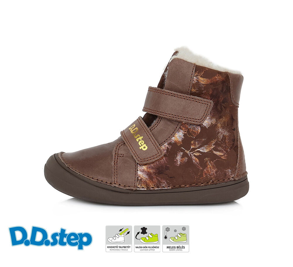 Detska zimná zateplená celokožená obuv s ortopedickou vyberateľnou vložkou, ktorej zvršok je vyrobený z vysokokvalitnej kože, ktorá zaručuje flexibilitu, priedušnosť a prispôsobuje sa tvaru detskej nožičky. Vyberateľné vložky majú špeciálny tvar pre maximálnu možnú stabilitu, ortopedická klenba podporuje zdravý vývoj detskej nožičky a špeciálny materiál tlmí nárazy pri behu. Podrážka je protišmyková z kvalitnej prírodnej gumy.