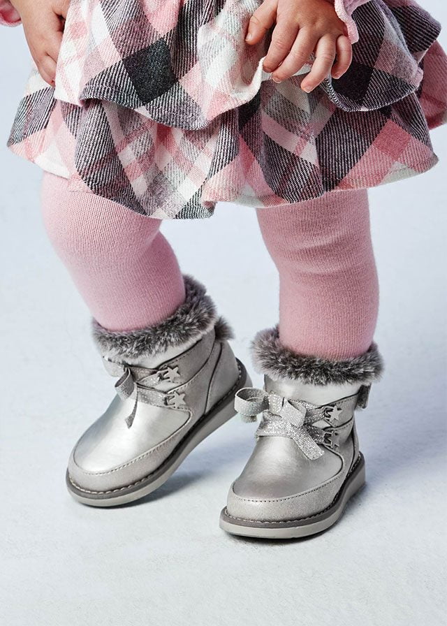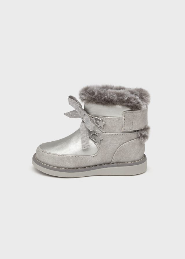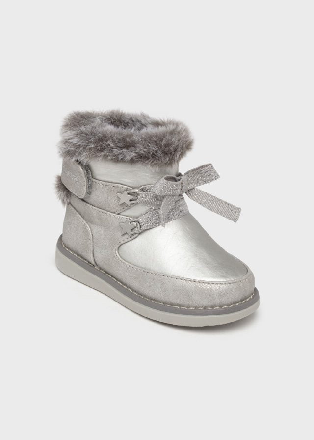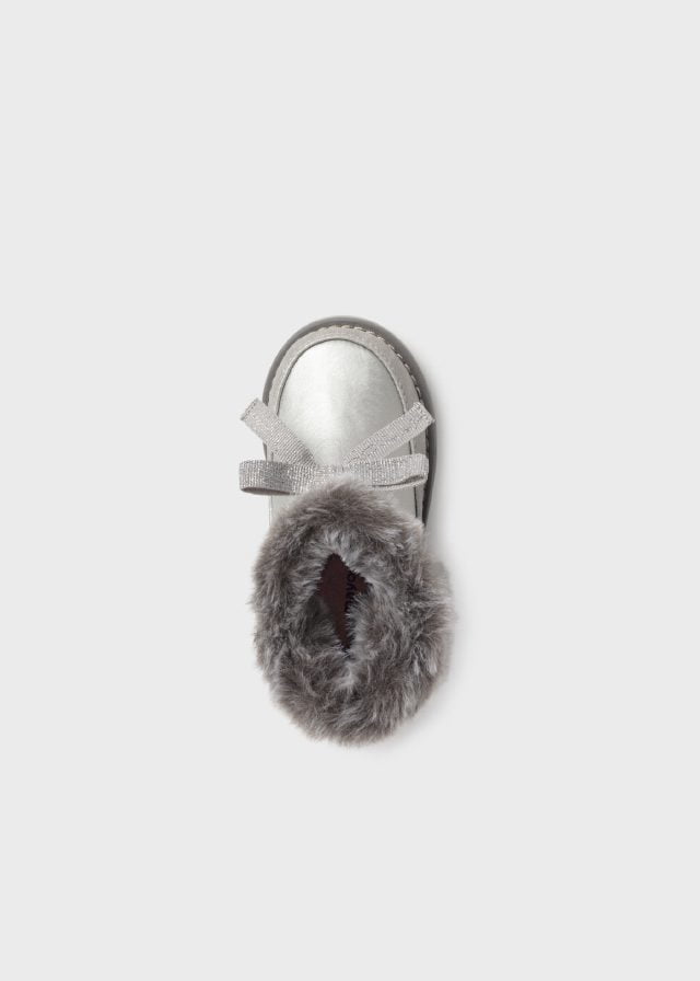Detské dievčenské čižmičky s kožušinou Mayoral strieborné