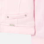 Long sleeved blazer for baby girl. Collar with snap button fastening. Front, central zip fastening. Made from comfortable fleece fabric, soft and smooth to the touch. Mock, decorative pockets on the front. Plain design.