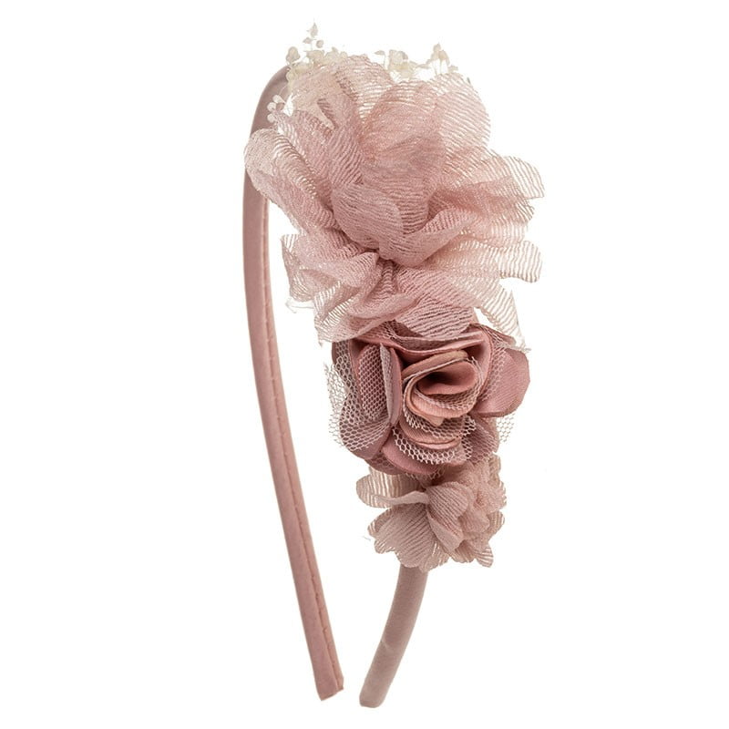 Dievčenská čelenka s kvetmi staroružová Headband flower combined antique pink 215106042