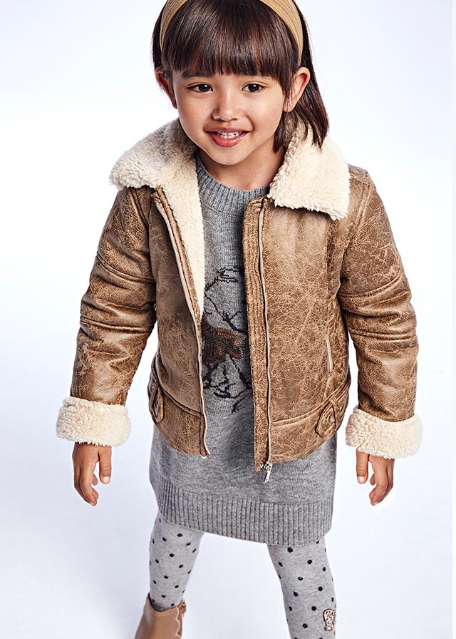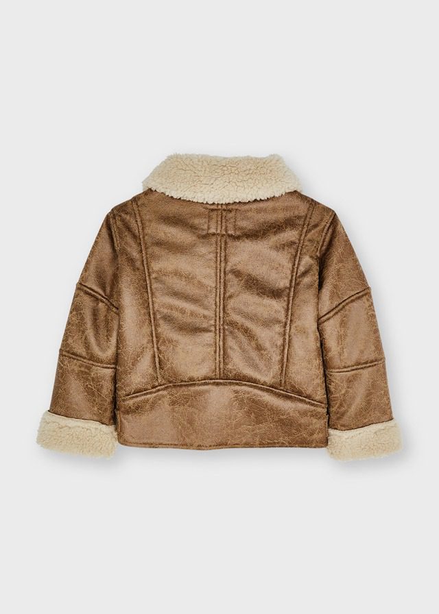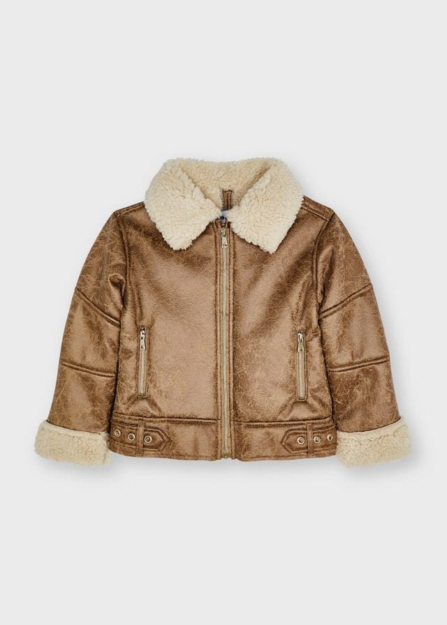 Prechodná vyblednutá koženková bunda Mayoral. Vyblednutá bunda s kožušinou.