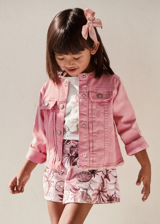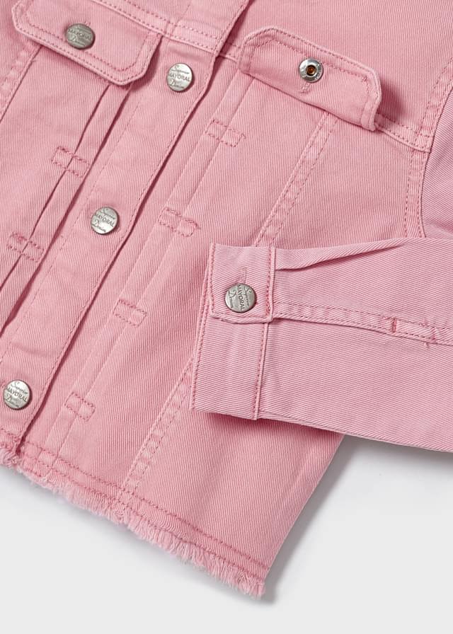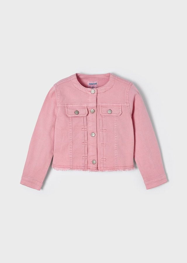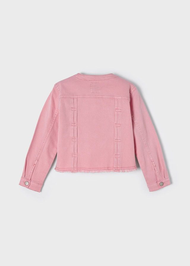 Dievčenská rifľová bunda na cvoky bez goliera Mayoral staroružová blush