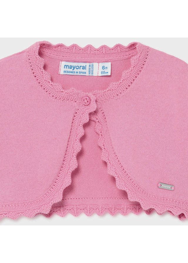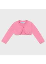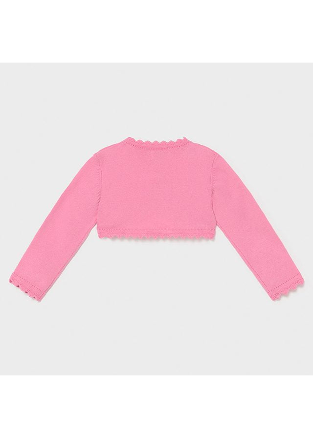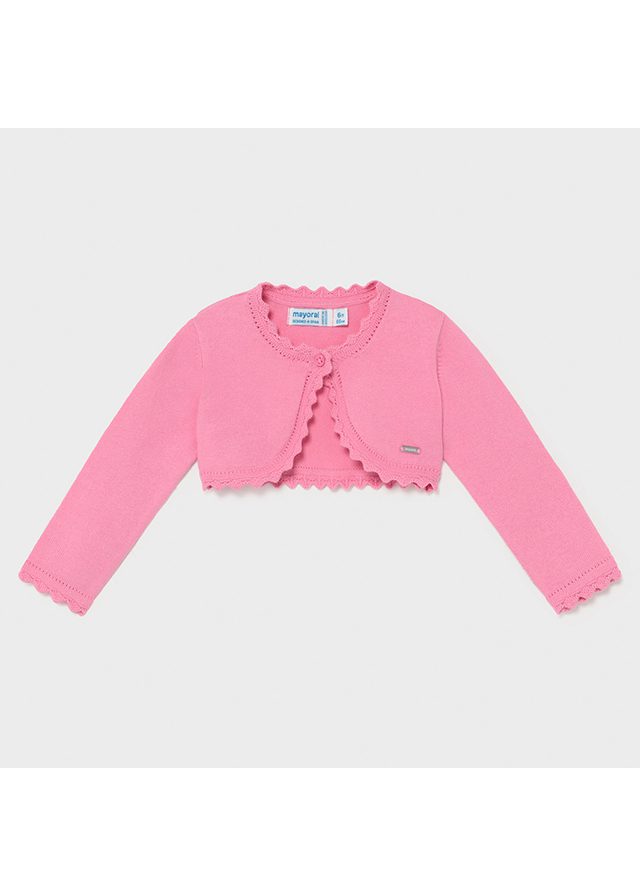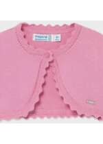 Ružové bolerko pre dievčatá. Ideálne na šaty. Dievčenské ružové bavlnené bolerko. Bolerko s jemným vzorom a zvlneným dizajnom na spodku odevu.