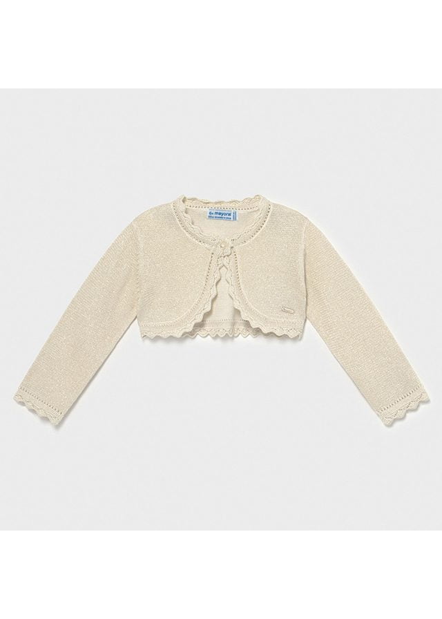 Dievčenské bolerko s jemným vzorom a zvlneným dizajnom Mayoral zlaté/champan