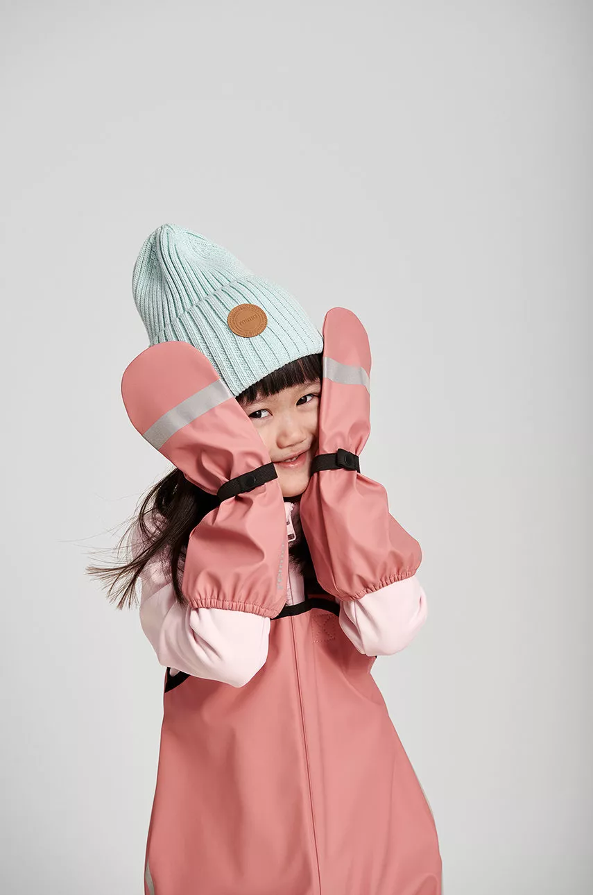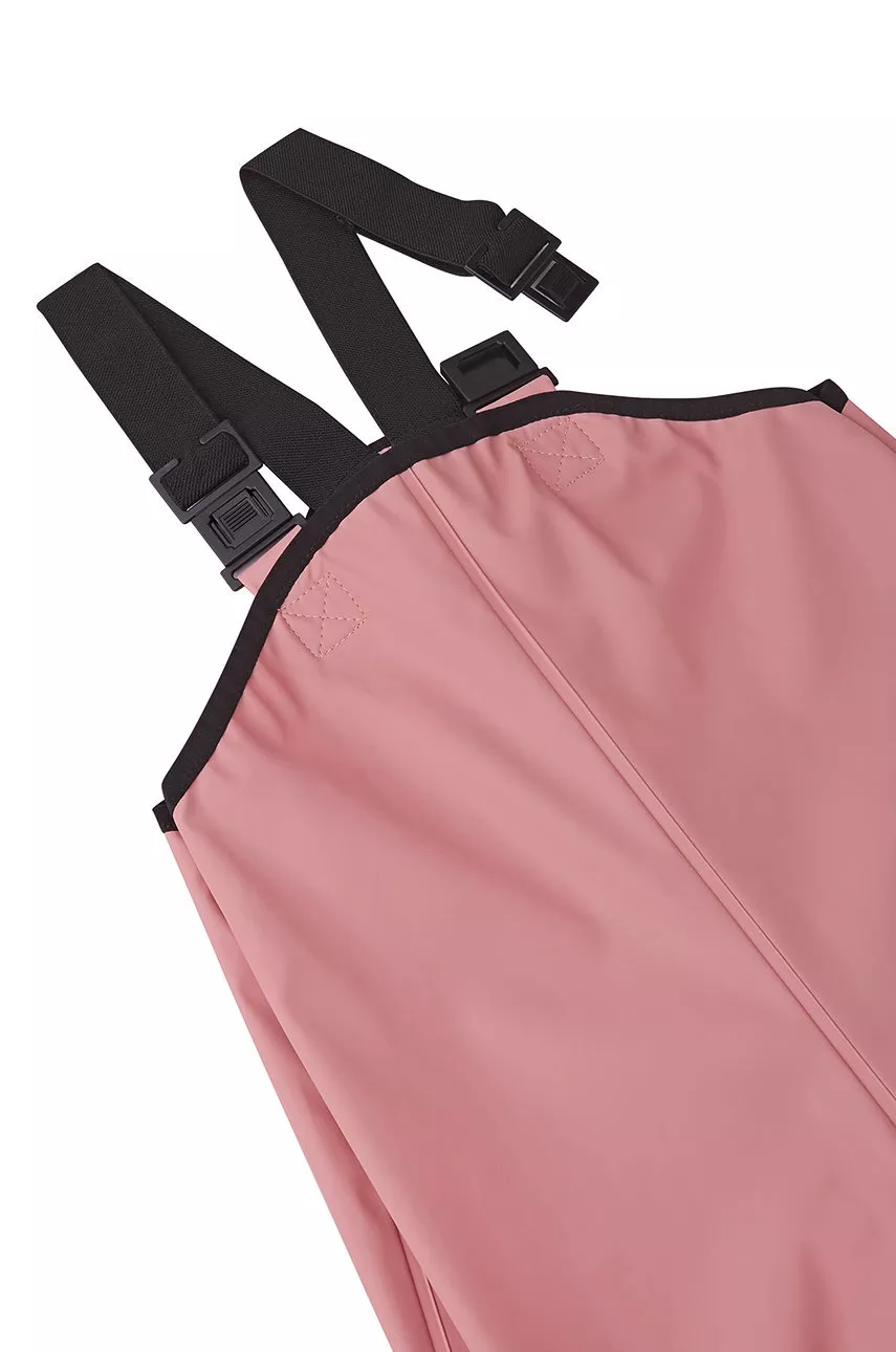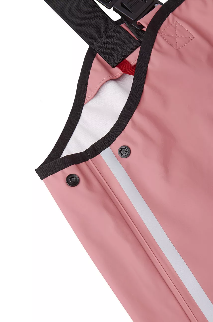 Nohavice do dažďa Reima Lammiko pre dievčatá pastelovej ružovej farby. Jednofarebné dievčenské nohavice do dažďa na traky. Nohavice majú reflexné prvky, podlepené švy, recyklované polyesterové vlákna, nastaviteľný pás,