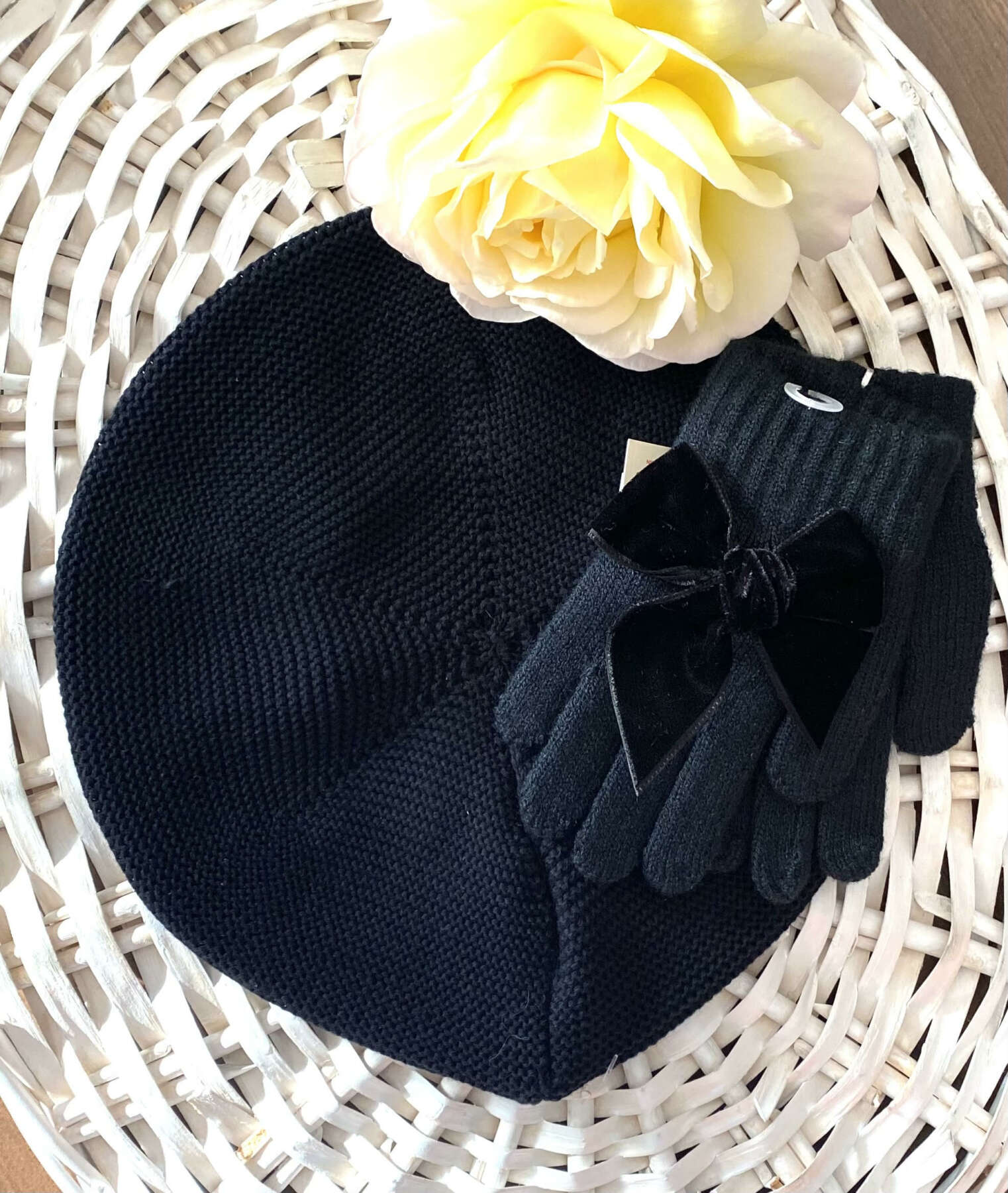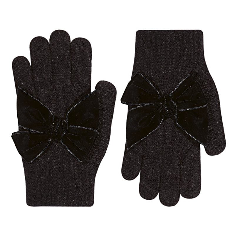 Dievčenské rukavice s veľkou velvet mašľou Cóndor čierne