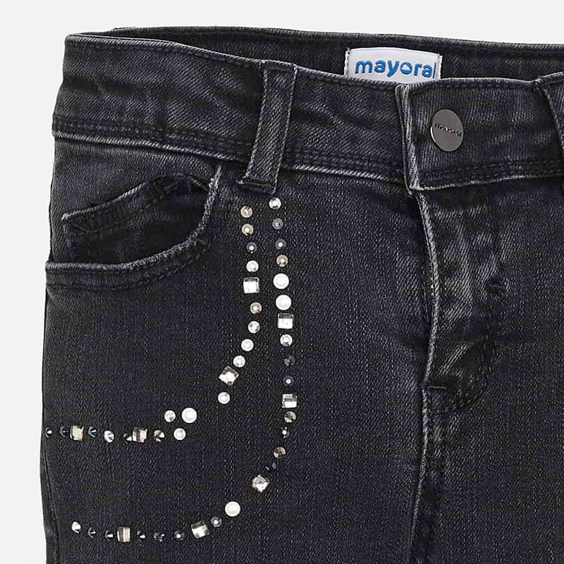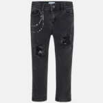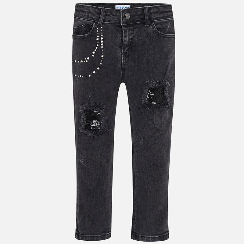 Dievčenské Skinny rifle s kamienkami pri vreckách a flitrami na kolenách Mayoral čierne