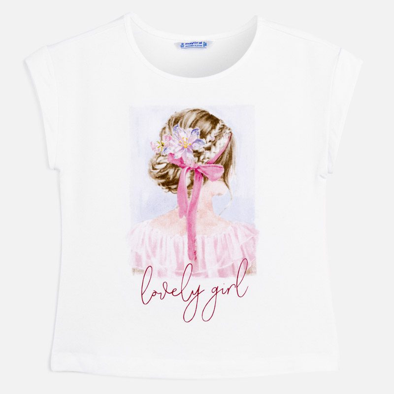 Dievčenské tričko s dievčaťom a nápisom Lovely girl Mayoral malvar