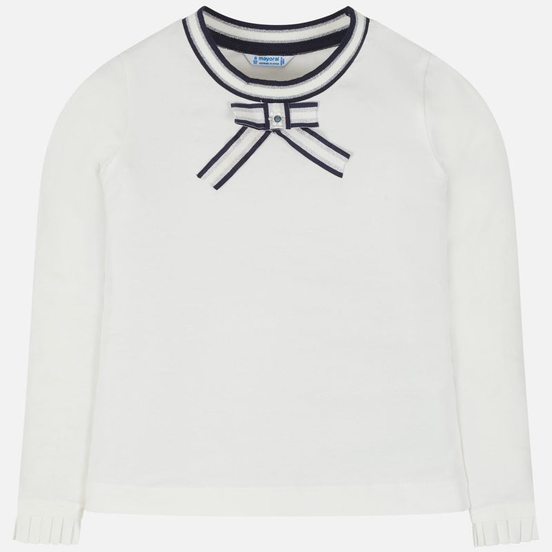 Dievčenské tričko s dlhým rukávom a brošňou pri krku pre tínedžerky