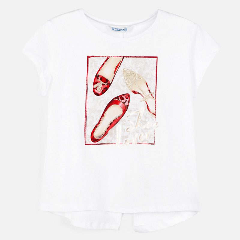 Dievčenské tričko s krátkym rukávom a potlačou topánky Mayoral