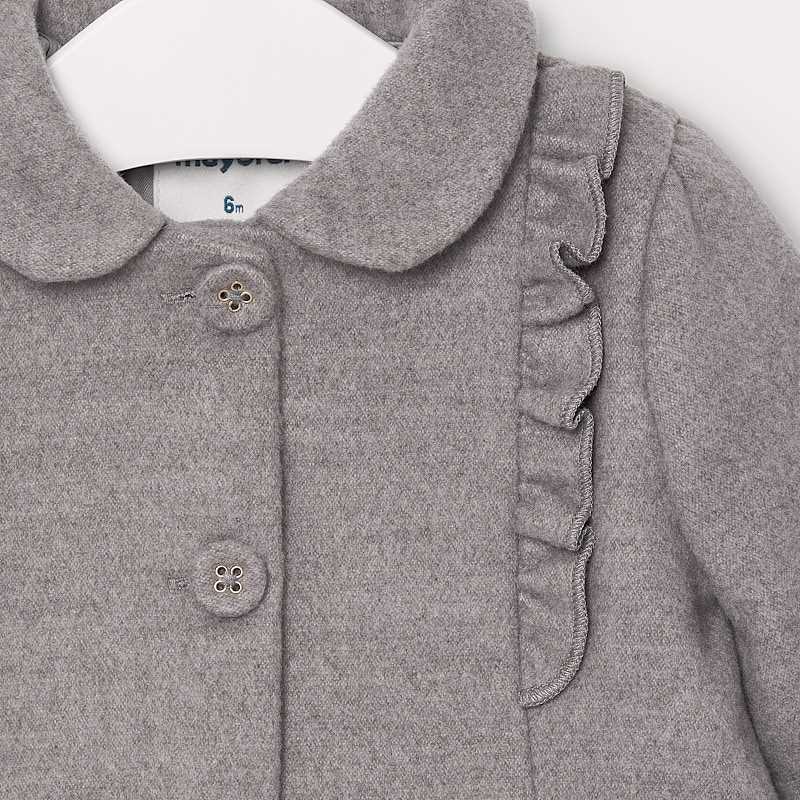 Dievčenský kabát s volánom Mayoral newborn sivý