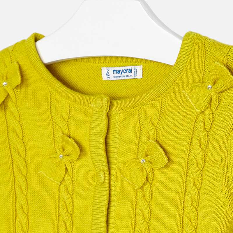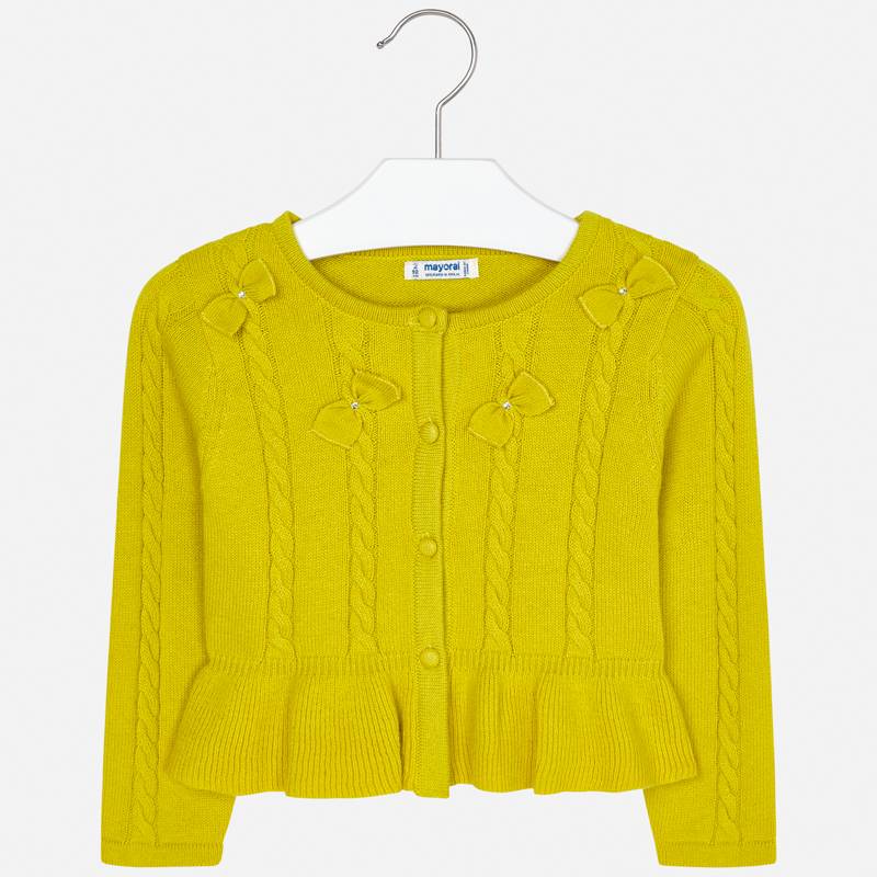 Sveter na gombíky s volánom a dvomi mašličkami.