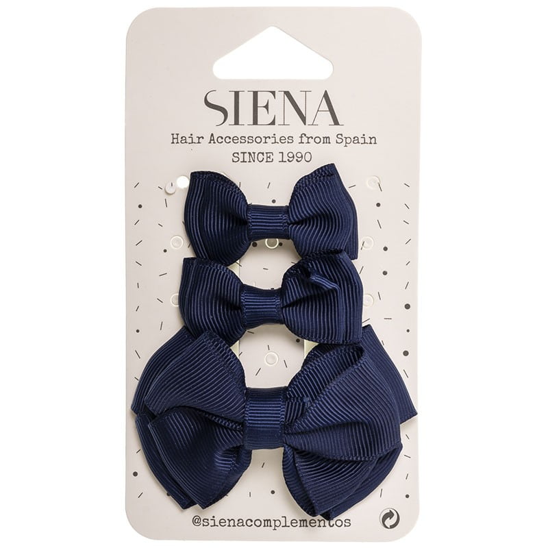 Tmavomodrý 3set mašličiek do vlasov. Kvalitné, pevné, vyrobené handmade v Španielsku.