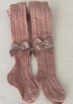 Háčkované pančušky s mašľou Cóndor staroružová tmavá pale pink