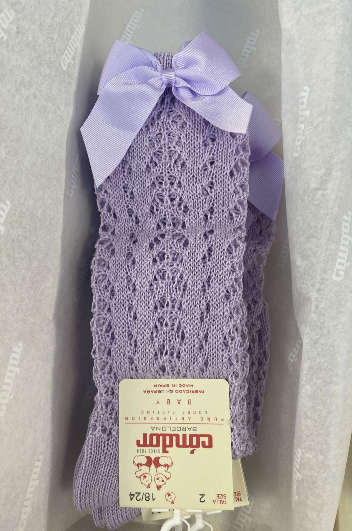 Háčkované podkolienky s mašľou Cóndor fialové svetlé