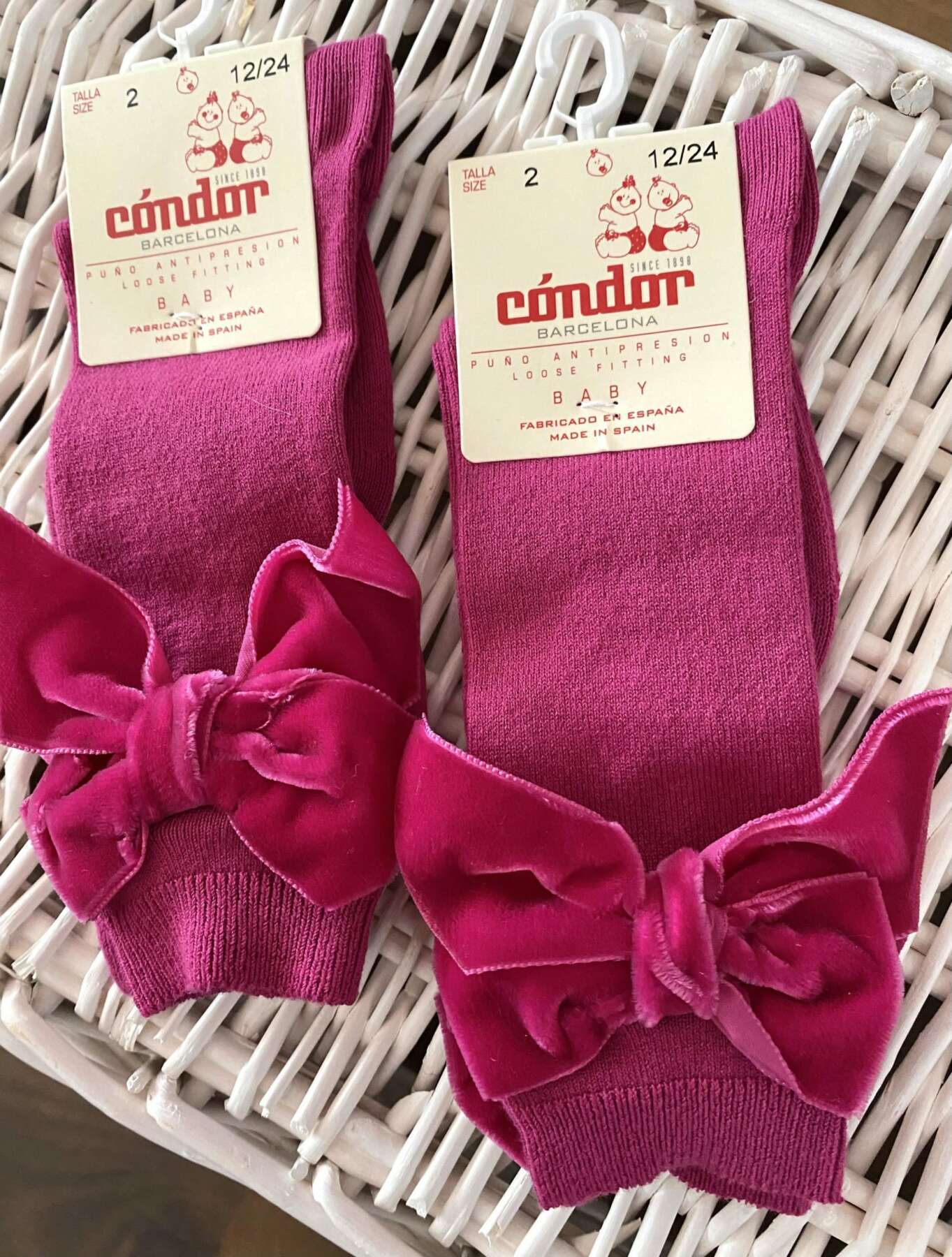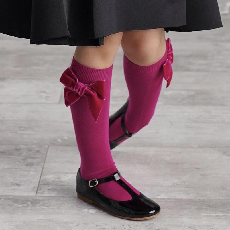 Hladké podkolienky s veľkou velvet mašľou Cóndor sýtoružové petunia